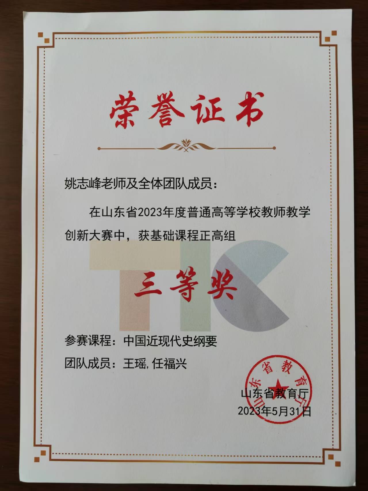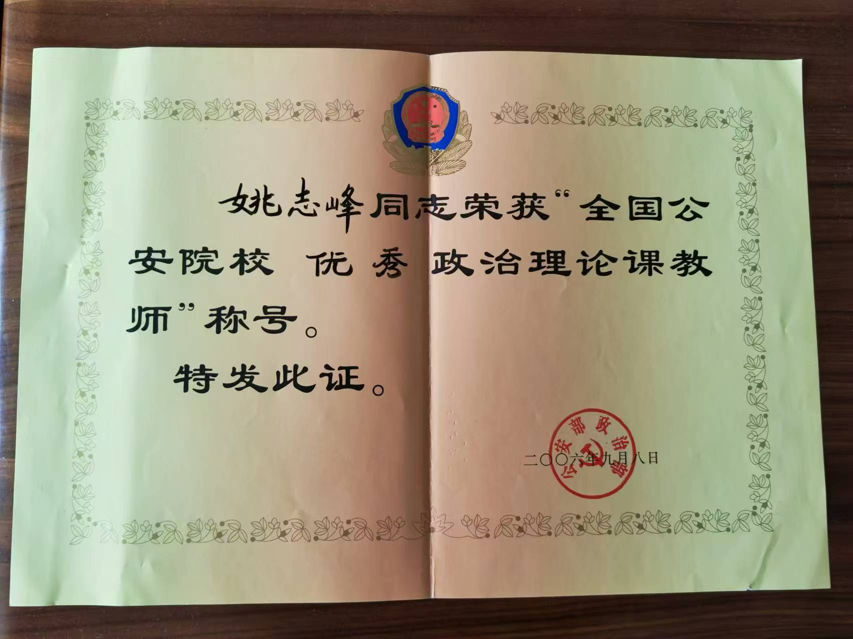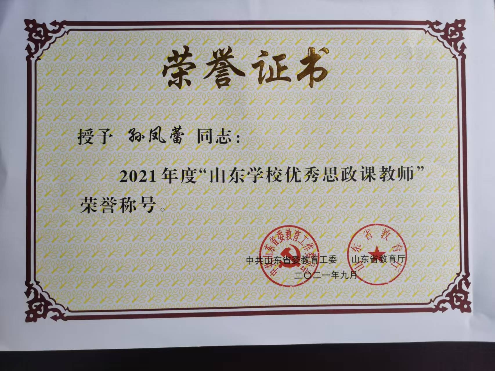 教师获奖证书