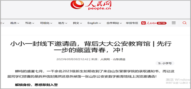 开发建设虚拟仿真“山东公安史数字教育馆”,推进数字思政、智慧课堂的建设和运用。对该场馆的突破性、创新性使用,人民网给予了详细报道。