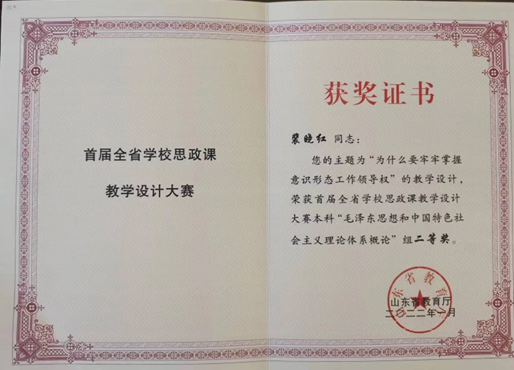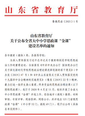 马克思主义学院大力加强具有“高阶性、创新性、挑战度”的思政“金课”建设。2021年,《毛泽东思想和中国特色社会主义理论体系概论》《形势与政策》两门课程被纳入山东省首批省级思政课金课建设名单。