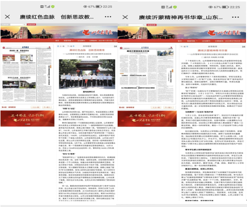 2021年以来,依托实践教学基地相继开展沂蒙精神主题实践活动,先后4次联合学校管理部门党支部、专业院部师生赴山东省政府旧址、红嫂纪念馆、大青山胜利突围纪念馆、沂蒙山小调诞生地开展沉浸式实践教学,马克思主义学院教师、思政社团学生进行现场教学展示,效果良好。实践教学活动先后被学习强国、山东教育报、山东教育新闻网、大众日报、齐鲁晚报等媒体进行报道。