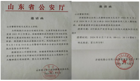 2021年以来马克思主义学院多次派出教师参加公安部、山东省公安厅的专项行动。其中姚志峰老师在2022年春季公安部的专项行动中,任专家组一组组长。在2023—2025年山东省委组织部和山东省公安厅组织的专项行动中,任专家组组长。施锋矫老师在2024年秋季公安部的专项行动中,为专家组成员。
